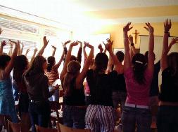 ![]() 同学们学炼法轮功的第一套功法中的动作 |