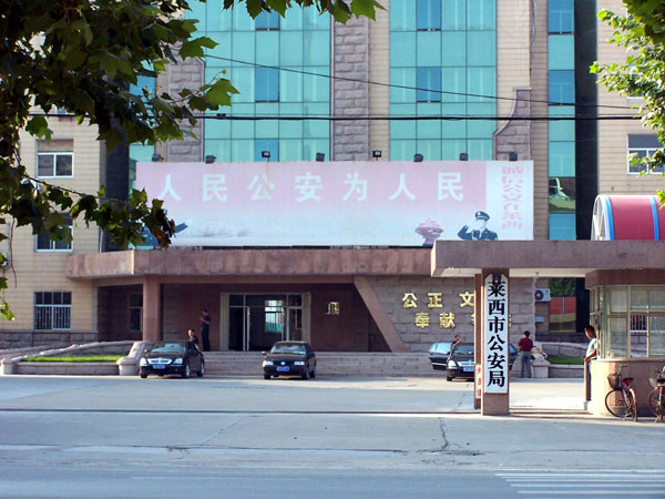 ![]() 莱西市市政府(610设在政府里面) | ![]() 莱西市公安局大门 | ![]() 莱西市治安警察大队(监狱设在里面) |