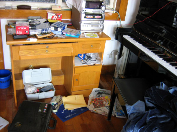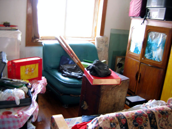 2005年5月13日,青岛市北区大法弟子公丕启、孙东霞夫妻被不法警察从家中绑架,其家中的打印机等私人财物被非法抢走。孙东霞及丈夫被绑架几天后,不法警察留在其家中蹲坑,抓捕任何去他们家的人。据悉至少有4人随后被绑架。6月30日,孙东霞在外地上学的女儿回家,发现家里被翻的一片狼藉(见图),还有大量的烟头及快餐盒。据当地派出所警察说,参与绑架、抄家及抢走钥匙的均为市北区公安分局所为。