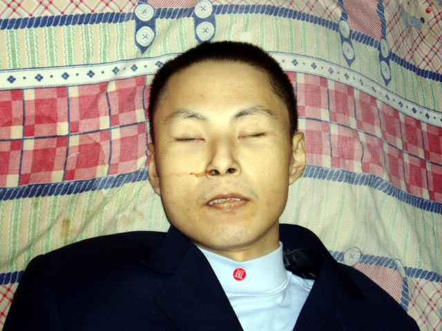 刚刚回家的吴春龙骨瘦如柴,佝偻着身子,神志不清,目光呆滞,没有任何表情,连自己的父亲都不认识了。他脸色苍白,脸的左侧比右边大很多,一只眼睛严重充血,显然是被毒打所至。亲友问他话他不吱声,没有反应,好象没有记忆、没有思维。