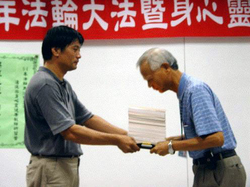 ![]() 现场一百多个位子座无虚席 | ![]() 屏东法轮大法学员赠予美和技术学院图书馆一套法轮功书籍 |
