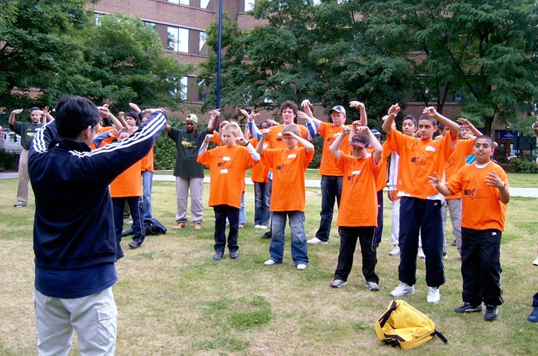 每个孩子都尊敬的向我们打招呼,包括那些起初看起来冷漠的;还有许多孩子到我们炼功的草地上学炼功动作,跟我们谈对中共迫害人权的义愤。