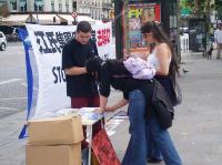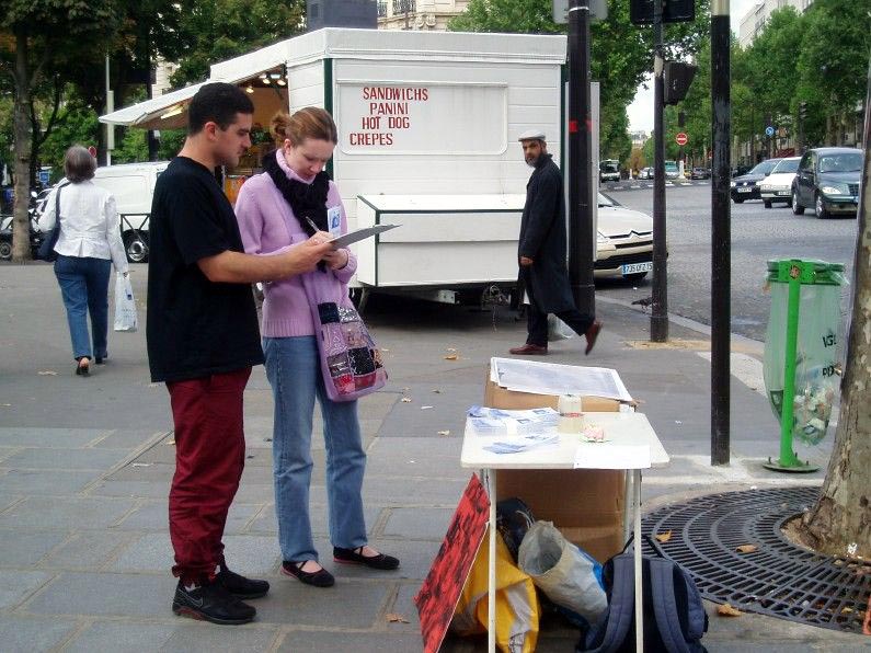 散发传单、功法演示、讲清真象、征集签名……虽然学员人数不多,但大家将这一切做得井井有条。路过此地的人们纷纷表达了他们对这场迫害的谴责与对法轮功学员们的真诚祝福。许多来自法国不同地区如:巴黎(Paris)、里昂(Lyon)、南特(Nantes)、克雷黛耶(Creteil)、昂吉(Angers)、布洛尼(Boulogne)、安东尼(Antony)等地的人们在支持反迫害的征签表上签名。还有一些来自英国、比利时、印度的外国游客,在获得了相应语种的真象资料后也欣然签名。