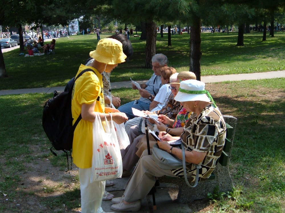 这里是多伦多的乌克兰城,极少见到华人。一家乌克兰家庭中的母亲问记者;“什么是‘Fa’?”她是看到了“FALUN DAFA IS GOOD(法轮大法好)”的横幅。