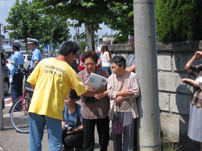 东北地区的法轮功学员去年也来过大曲的烟花大会发真象资料,从那时候起,一年来,学员们利用周末和节假日,驱车三千多公里,先后到秋田市、青森县北部的八户市及邻近地区、青森市、山形县的山形市、新庄市、鹤冈市、宫城县内的几个地区洪法讲真象,今天再次来到大曲。东北地区哪个地方有大的庆典活动,学员们就到哪里,没有节日活动的时候就到各个还没有法轮功学员的地方发报纸,让那些地区的日本民众也能有机会了解大法。学员们有的是现在在大学里的博士、硕士生,平时学业繁忙,本来休息时间打工谋生,也请假出来了;家庭主妇把家里安排好也前来帮忙;大学的老师把幼小的孩子留给家里,带着干粮,驾车上路了。据组织这些洪法活动的学员讲,他们还要继续做下去,十月份计划去福岛县的几个城市,而且希望以后有可能跨越海峡到日本最北部的北海道去洪法。
