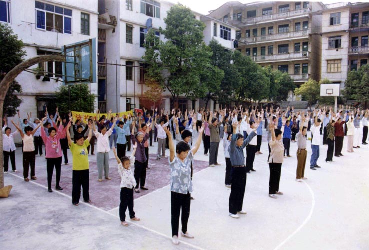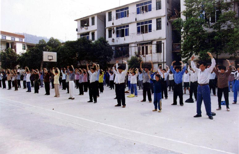 图片:1999年7.20以前东北某地大法弟子集体炼功场面
