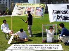据渥太华公民报8月26日报导,法轮功学员在国会山前重现酷刑,希望加政府对来访中共领导人施加压力。
