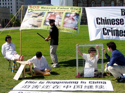 ![]() 法轮功学员在国会山前重现中共酷刑 |