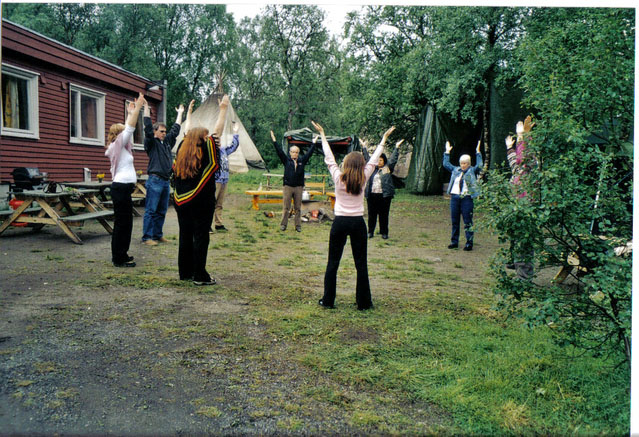 在罗福登群岛的主要城镇斯沃尔夫(Svolv),学员们竖起横幅并演示法轮功功法,一位学员炼功,另一位学员则发真象小册子。许多旅客接到以他们自己语言印制的小册子时,都非常高兴,学员们遇见的人有来自英国、德国、日本、法国、以色列和其它国家的人。