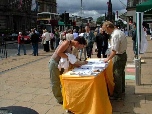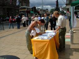 英国爱丁堡艺术节起源于上世纪40年代,据组委会估计,今年的爱丁堡艺术节将会吸引近2万名来自世界各地的游客。爱丁堡艺术节伊始,法轮功学员于8月6日在爱丁堡王子大街(Princes Street)举行了洪法和讲真象活动。