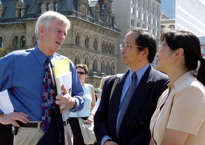 ![]() 国会议员大卫-乔高同法轮功学员在一起 |