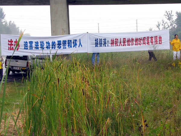 图片报道:在胡访加期间的大法横幅