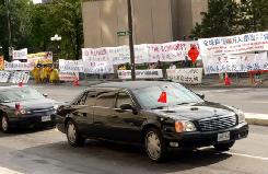 胡锦涛的汽车经过法轮功学员请愿现场