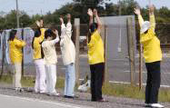 ![]() 法轮功在胡前往尼亚加拉瀑布的路上向胡传递停止迫害的讯息 |