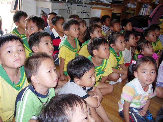 ![]() 从影片中看到受迫害的孩子,善良的孩子们露出难过及不解的眼神 | ![]() 受到真象影片感动而流泪的孩子 |