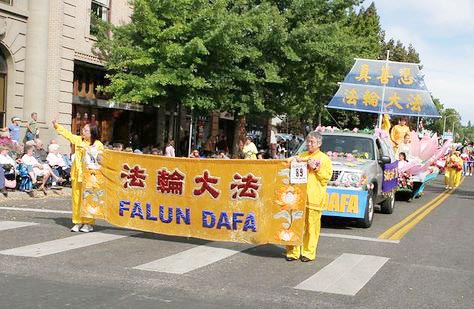 西华盛顿州的学员抽时间赶来,带来了美丽的莲花花车,还有一支腰鼓队。华盛顿州东部的学员则带来横幅,展板照片和发放的资料。