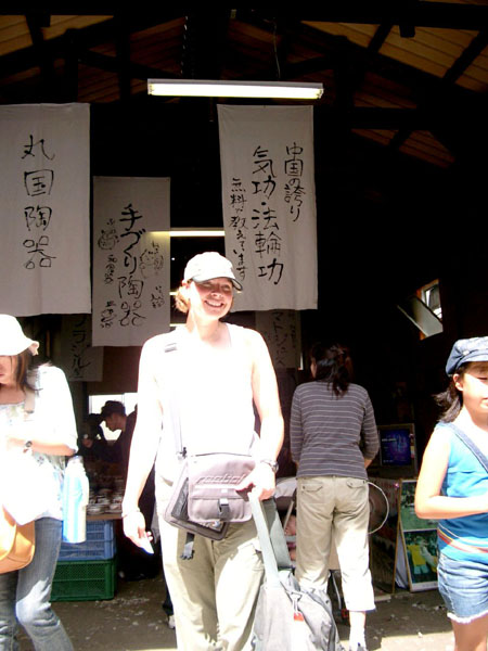 ![]() 濑户市陶瓷节的市容 | ![]() 日语写的“中国的骄傲、气功•法轮功、免费教功”等标志挂在入口处上方最醒目的位置 |