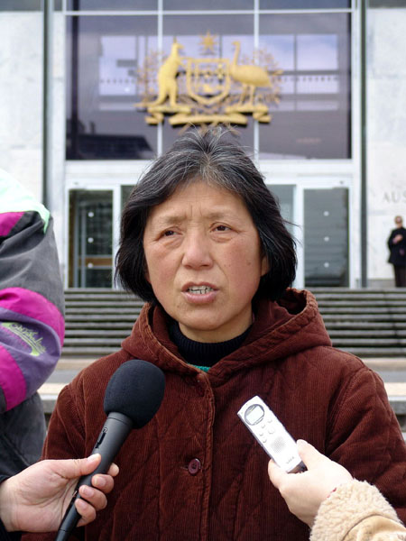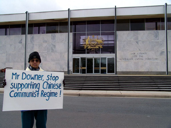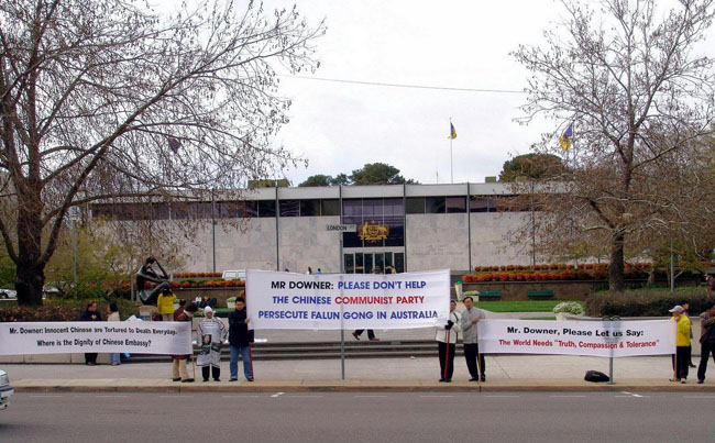 ![]() 看过中共百种镇压法轮功的酷刑图后,人们不无为之震惊 | ![]() “中共镇压法轮功百种酷刑”图展,后面背景是中共驻雅京大厦 |