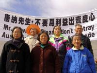 对于沃道夫酒店前的法轮功请愿地点,中领馆的一些官员亲自来到现场,和警察交涉施压,臭名昭著的亲共人士花俊雄也跑前跑后。大法弟子心定念正,一边发正念清除这些人背后的邪恶,一边一直和警察讲真象,告诉警察我们是非常平和的,胡上台两年多,惨无人道的对法轮功的迫害还在继续,国内受迫害的千千万万的法轮功学员没有任何机会发出声音,我们非常珍惜这个机会,就是希望胡能明白真象,立即停止迫害法轮功。警察们表示知道法轮功,同情法轮功。还一再表示给法轮功学员的位置是他们能给的最好的,也是离沃道夫酒店最近的。