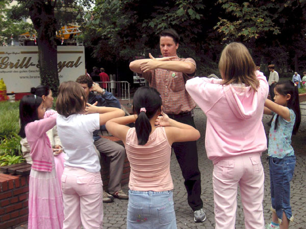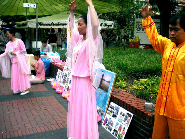 有的游客在买了书或是教功录像带之后,还询问了在哪可以学功。也有的游客说,看了大法的网页后,知道法轮功并不象中共当局宣传的那样;还当时就请学员教炼功动作。
