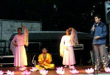 学员们在展位上方打出了“法轮大法好”横幅,并在展位上摆放了日、中、英文大法书籍,教功录像带,和有关法轮功的真象资料;同时还利用电视播放李老师的教功录像,并进行义务教功。
