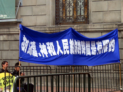 【明慧网2005年9月15日】据美国之音9月13日报导,中共领导人胡锦涛13日从墨西哥飞抵纽约出席联合国首脑会议的时候,法轮功、台湾人团体和民运人士以集会、示威、游行等方式对胡锦涛表示抗议。