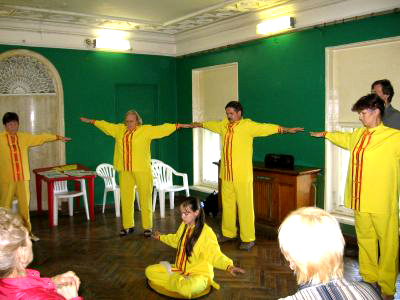 【明慧网2005年9月2日】2005年8月25日,莫斯科法轮功学员参加了第四届俄罗斯民间传统医疗国际会议。在会议期间学员们展示了法轮功的五套功法,并向与会者介绍了法轮功是什么,以及中共对法轮功