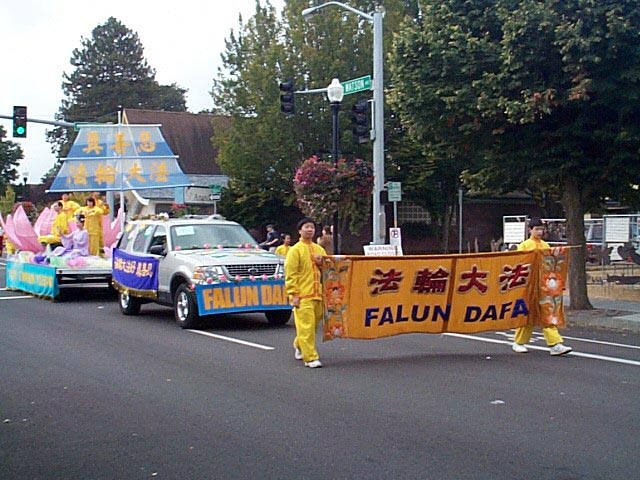【明慧网2005年9月20日】二零零五年九月十七日,美国俄勒冈州和华盛顿州的法轮功学员参加了大波特兰地区比佛顿市(Beaverton)一年一度的庆祝游行。在近百个参加团体中,法轮大法学员获得了包括“最佳装饰”在内的三个奖项。沿途的上万名观众被装饰着风帆、莲花的花车和功法演示吸引,兴奋的报以掌声和赞叹。