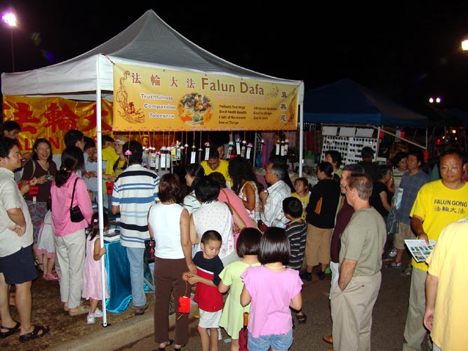 ![]() 法轮功学员的摊位 | ![]() 明慧学校摊位 |