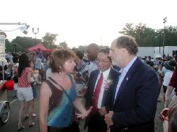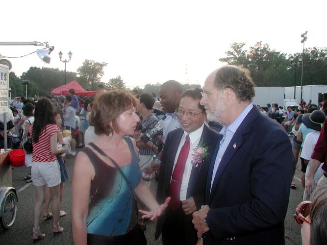 由于“中秋游园会”吸引了众多的华裔以及其他社区人士参加,包括爱迪生市市长、市议长、一些州参众议员等政府官员都来到现场支持。正在参选新泽西州长的现任国会参议员科赞(Jon Corzine) 也来到现场,新泽西法轮功学员主动与参议员科赞交谈,向他当面递交了有关中共迫害法轮功的最新材料,要求参议员能为帮助停止发生在中国的迫害作更多的努力。