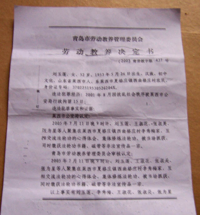 李冬梅,女,48岁,建昌县国税局干部,因坚持修炼法轮大法,曾三次被非法拘留、两次非法抄家、2002被非法判劳教三年(送马三家检查身体不合格拒收),2003年被单位非法开除公职,后一直被迫流离失所。
