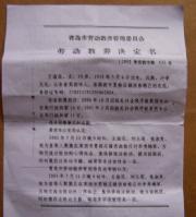 2000年底,我的妻子、儿子因散发真象资料,被乡政法委、派出所恶警非法抓到看守所。我儿子遭到贾双万等恶警的残酷迫害,至今身上还有伤痕,大便时而困难,时而失禁。