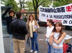 还有许多年轻人和孩子们对中国发生的这场惨无人道的迫害表示十分的关注。他们急切的接过资料阅读,并十分高兴能够有机会签名声援法轮功。