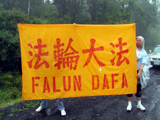 据来自多伦多的张梦华介绍,为了给胡锦涛明白真象的机会,法轮功学员们一直在大雨中坚持,许多学员,包括一些老年学员一直到下午都没有吃一点东西,但是大家精神状态都很好,非常协调一致。