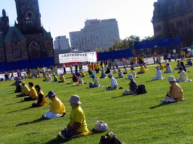 9月9日,加拿大总理马田在渥太华国会会见胡锦涛时,明确提出了法轮功问题。据法轮功学员李迅回忆,8日晚,反对党主席斯迪文-哈普(Stephen Harper)参加总督府聚会前,没有直接进入,而是特意绕到学员请愿的现场,同和平请愿的法轮功学员握手交谈,并鼓励法轮功学员再接再厉。9日的新闻发布会上,加拿大媒体记者向胡锦涛提出的第一个问题就是包括法轮功受迫害在内的中国人权的问题。