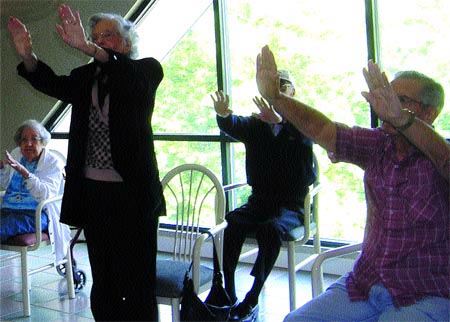 犹太教规主管格拉斯曼欢迎大家来艾登布卢克社区一起炼法轮功。这个月格博也计划到狩猎崖山顶(Huntcliff Summit)的朝阳老年社区教炼法轮功。