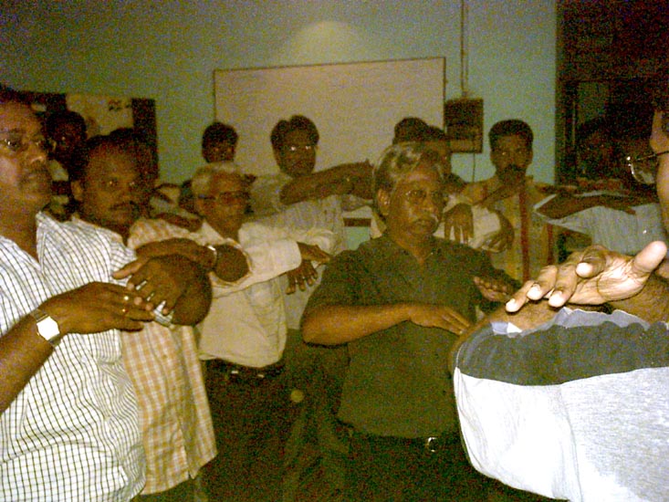 一位女士6、7年前就买了法轮功的书,也读了,但一直在等人教她炼功;一位男士从库得拉市(Cuddalore)专程赶来学功,从那儿到晨奈至少要坐四个半小时的火车;有一个人听说法轮功免费教功,主动提供他的办公室,用来办第一个学习班。