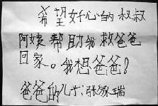 ![]() 张斌与儿子在一起的快乐时光 | ![]() 思念爸爸的张家瑞 | ![]() 张斌儿子写的求助信 |