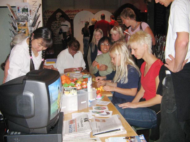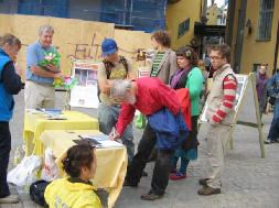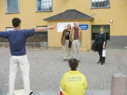 洪法活动在市中心的劳动博物馆内外同时进行。室内是播放法轮功创始人李洪志老师的教功录像和制作纸莲花,户外是学员功法表演及真象图片展示,漂亮的莲花、优美的功法深深打动了当地居民,引来一批批的人观看。