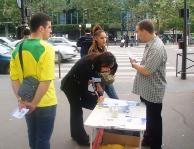 在活动中,我们发现有很多人都听说过法轮功。例如有一位男士看到真象传单后表示不需要,他说:“我早就了解(法轮功)了。”随即签名表达了他对法轮功的支持。还有一位先生过来问什么是法轮功,他身边的一位女士马上告诉他:在某某公园就有炼法轮功的。他们都对法轮大法有正面的认识。