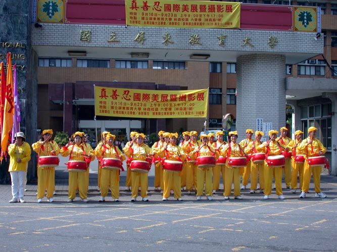 ![]() 屏东教育大学致赠感谢状给法轮大法学会 | ![]() 唐鼓队为开幕式揭开序幕 |