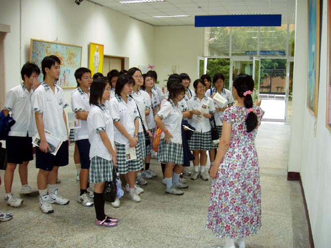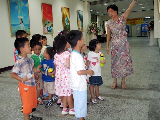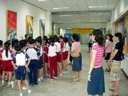 ![]() 幼稚园小朋友也来参观 | ![]() 小学生及陪同的家长静听导览 |