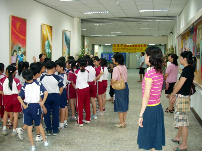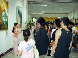 仁爱国小的一班学生由老师带领,多位家长主动支援开车接送学生,一起来到会场。他们全程鸦雀无声的跟随着导览人员逐一观画。孩子们在庄严神圣的画作前,真的是一层一层的被洗净。多位家长的回馈中都提到:以前对法轮功只是个模糊的印象,今天是彻头彻尾的上了一课,很值得!