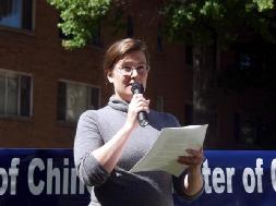![]() 要求禁止孙家正入境美国(明慧图片) | ![]() Laura Hattan 女士在发言(明慧图片) |