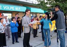 ![]() 法轮功发言人Joel Chipkar讲话 | ![]() 法轮功学员在部长办公室前静静的请愿 |