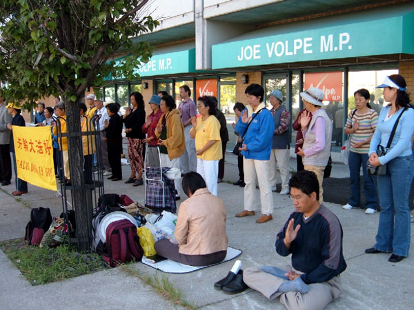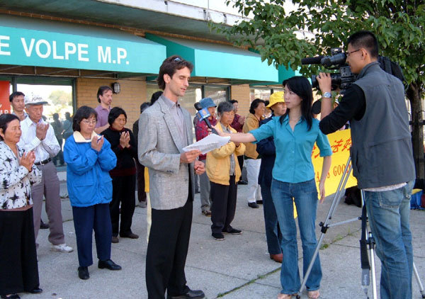 下午1时左右,法轮功学员的代表进入移民部长的选区办公室,向办公人员递交了请愿信。