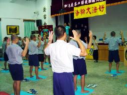 在这里的修炼收容人,不像一般法轮功学员一样,有个稳定的交流的环境。在每位同学学功的表情中,不难感受到他们对法轮大法的珍惜。最后一天,大家都感到一股依依不舍之情,在交流心得时,有的同学谈到自己过去所有恶习都有,但从今以后,愿以真、善、忍来要求自己,每天谨言慎行,去掉脑内所有不该的念头;有的同学谈到自从修了法轮大法后,多年的胃疾已经痊愈,心性上的改变更是连狱中主管都大为惊叹;有的同学则表示日后一定会好好珍惜这个难得的机缘。