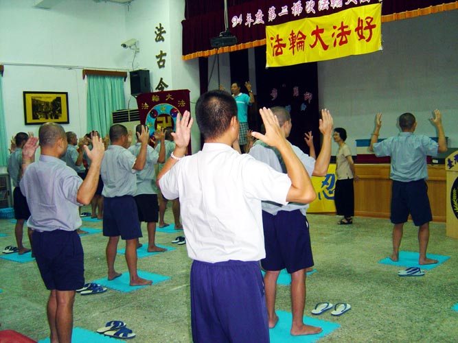 2005年7月29日至8月5日,绿岛监狱为收容人举行第二次法轮大法研习班,这是台湾法轮功学员第二次来到绿岛监狱。自愿来参加的受刑人共有十九位,其中有几位是去年得法后到现在仍持续修炼的,有几位则是带着好奇心,想来一窥究竟,当然也有对法轮功有兴趣的受刑人。基本上,每天早上两小时安排看李洪志老师的讲法带,下午两小时则安排法轮功学员的修炼心得分享及学习五套功法,整个过程下来,每个人都有不同的收获。