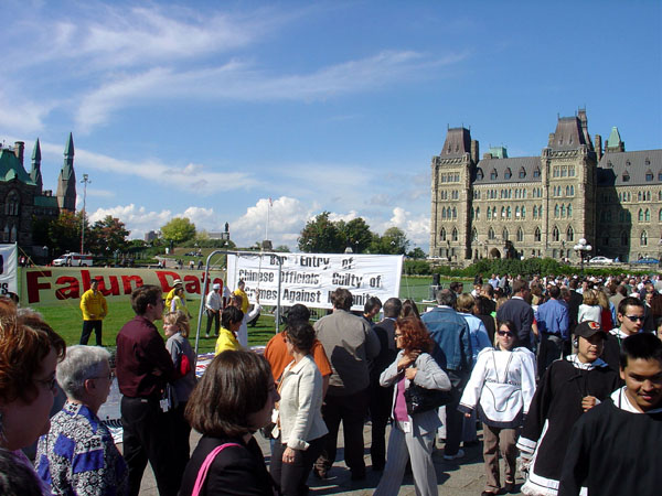 ![]() 法轮功学员在国会山前的呼吁引人注目 |