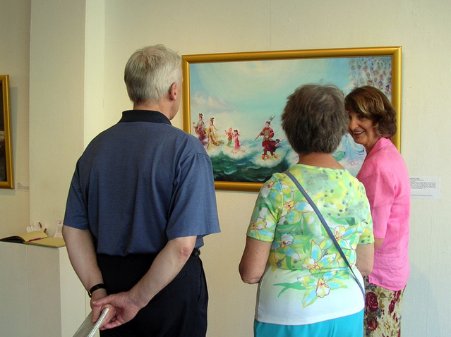 画中展现的修炼法轮大法的美好,法轮功学员们的大善大忍和中共发动的这场迫害的残酷血腥,震撼了观众们的心。临走时,他们纷纷在留言簿上留下了对法轮功学员们的赞扬、鼓励和美好的祝愿。